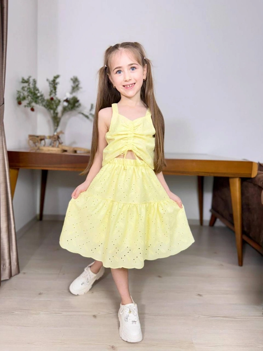 Aksesuarlı Pamuklu Keten Takım (2-5 yaş)