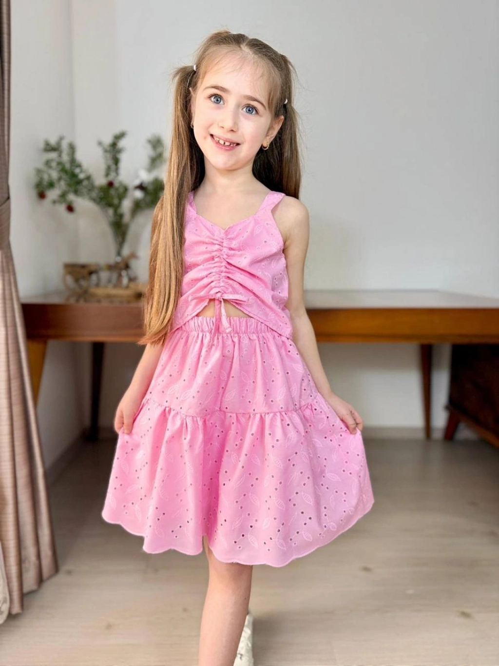 Aksesuarlı Pamuklu Keten Takım (2-5 yaş)